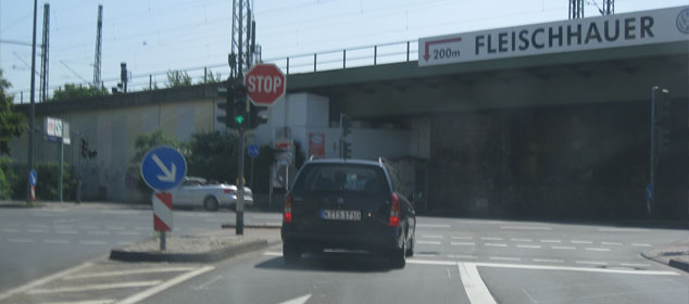 Exit here, and drive on below this "debris-themed" bridge to get to the "Strasse des 17. Juni".