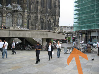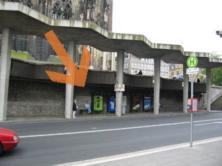 Exit the station through its main entrance, leading towards the cologne cathedral (kölner dom) and the city center. You should see the cathedral to the left (yes. take a second to enjoy the view) and rather ugly stairs leading to the plateau.
